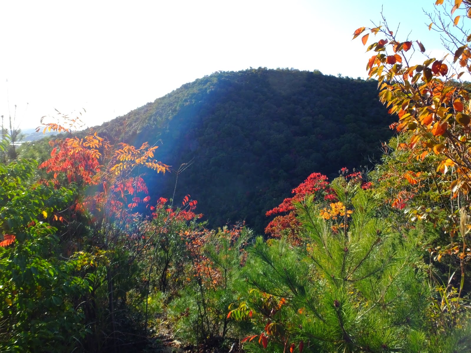 高御位山麓にある市ノ池公園で紅葉を楽しみました。神戸では世界一高いクリスマスツリーが話題になっていますが、市ノ池公園にもクリスマスツリーが似合う高く真っ直ぐな木がありました。木の葉は朱や黄色に色付き、金色の木の実はまるで鈴の様に輝いていました。ハイキング道を進みますと、谷の向こうに鹿島神社の本殿が見えました。なかなかの趣のある風景でした。